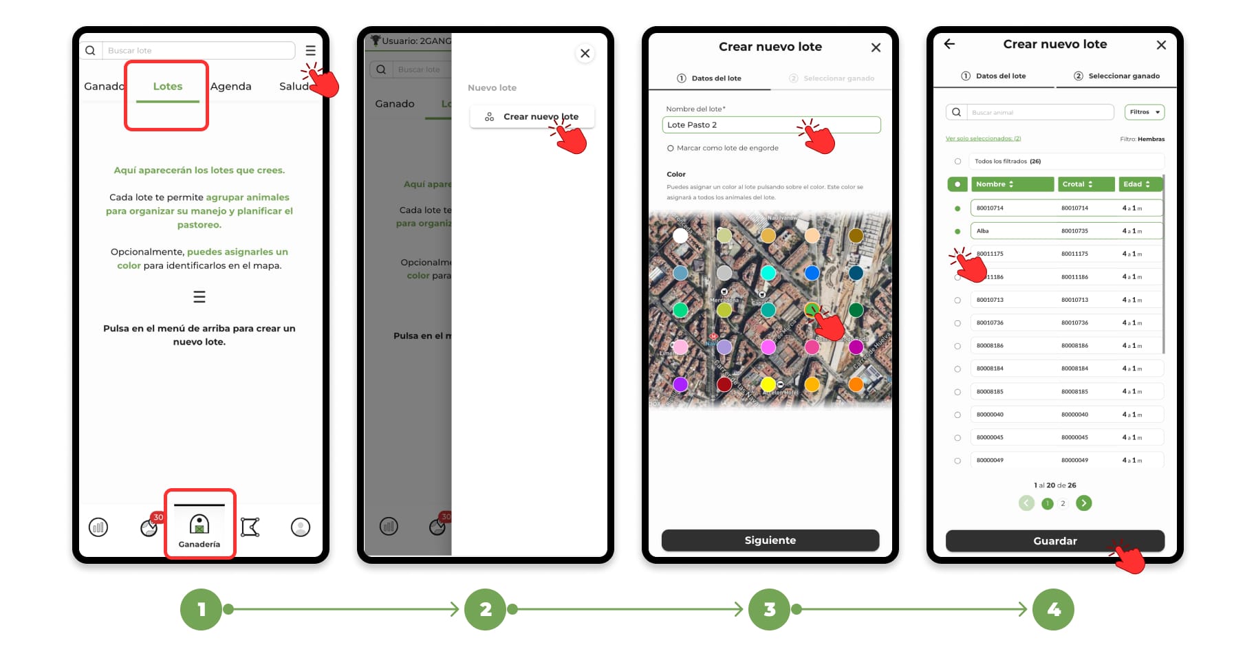 Los lotes te permiten agrupar animales para gestionarlos de forma más rápida y sencilla.