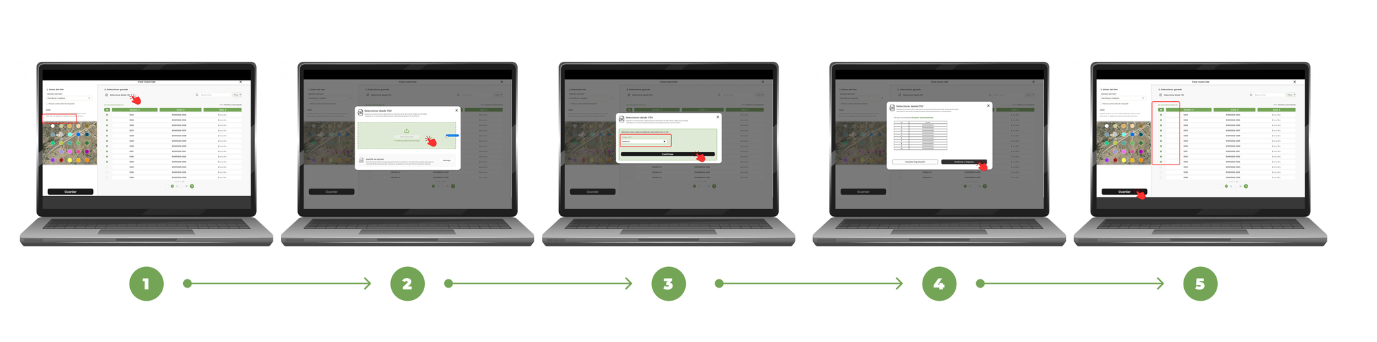 - Si un lote combina animales con y sin dispositivo, los que no lo tengan se asignarán automáticamente a la misma zona.